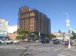 The Coney Island Theater was built on the site of the Culver Depot, a former railroad terminal that was decommissioned after the new subway terminal had opened.[11]: 3 One resident on the site refused to be evicted, resulting in a court case where he was eventually paid $5,000 to move away.[12] The theater was constructed by the Chanin Construction Company, whose president Irwin Chanin said that he believed the theater would satiate "the great need in Coney Island for an all-year amusement".[13] Theater designers Paul C. Reilly and Douglas Pairman Hall were hired to design the structure, construction for which began in May 1924. The Coney Island Theater distinguished itself from other area theaters in that it was constructed with brick, limestone, and terracotta as opposed to the wooden materials used in other Coney Island structures. In addition, it provided seven stories where other Coney Island buildings were only one or two stories.[14][15] The theater also included offices intended for entertainment companies as well as shops on the Stillwell and Surf Avenue frontages. Construction was expected to cost $2 million in total.[16][17] In April 1925, the Coney Island Theater was leased to Loew's Theatres.[18]