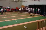 A game of short mat bowls being played | |
