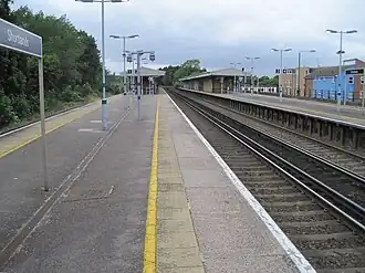 Shortlands railway station is in Shortlands, in the London Borough of Bromley in south London. It serves the southwest part of Bromley, and is 10 miles 3 chains (16.2 km) down the line from London Victoria. The station is located on the A222 road. Shortlands Junction, just west of the station, is where the Catford Loop Line joins the Chatham Main Line: the two lines are split into slow and fast pairs through the station, which consists of two island platforms on an embankment. The station is in London Travelcard Zone 4, and the station is managed by Southeastern and trains are operated by Southeastern and Thameslink.