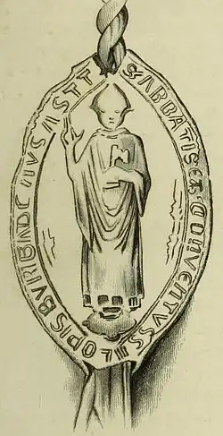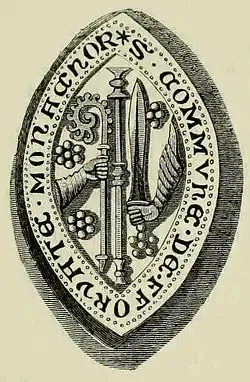 When sufficiently complete (probably late in 1087), regular life began under the first abbot, Fulchred of Sées. The Abbey of Saint-Martin-de-Sées was closely associated with Shrewsbury in the early years because Earl Roger was its founder and he and the House of Bellême, into which he had married, were also major benefactors there, as were Roger's knights.[19] A notification lodged at Sées in 1086 by Robert of Bellême, Roger's son, who was later to become 3rd Earl of Shrewsbury, shows that they used the monks as witnesses in their property deals and custodians of the documents.[20] About the time he recruited Abbot Fulchred or Foucher, Earl Roger made a huge grant of estates in England to Sées, for the soul of recently deceased William the Conqueror, as well as of Queen Matilda and of Roger himself and his dead wife Mabel de Bellême.[21] Some of these were estates he had originally intended for Mabel.[22] It seems that Sées Abbey for a time harboured plans to claim jurisdiction over Shrewsbury and it also contested some properties granted by Earl Roger; however, Shrewsbury became independent.[23]