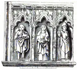 In 1137/38[45] Robert of Shrewsbury, who was prior under the third and fourth abbots, Herbert and Ralph, negotiated and carried out the translation of the remains of St Winifred from Gwytherin in Wales. Robert is thought to have been a member of the Pennant family of Downing, a few miles north-west of Holywell, the main shrine and fountain of Saint Winifred.[46] He wrote a life of the saint shortly after the translation, adding an account of his mission to Wales, which is the main source of information about the events.[47] The body was disinterred and borne ceremoniously to Shrewsbury, a week's journey[48] on foot and thus encumbered. There it was laid in the church of St Giles to await the blessing of the Bishop of Coventry and Lichfield. Overnight a youth was enabled to walk again by the presence of the reliquary.[49] It was taken in procession into the town. The expectation of an episcopal blessing ensured it was witnessed by "an incredible concourse of devout people"[50] as it was taken to be placed on the altar of the Abbey church, where further miracles were reported. The relics were later enshrined in the abbey.