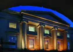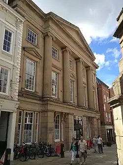 It is a unique collection of buildings, including the Grade II* listed 13th-century Vaughan's Mansion, one of only a handful of early medieval defensive hall houses remaining in the UK. Occupying the main part of the site is the 19th-century Music Hall and Assembly Rooms, designed by Edward Haycock Snr in 1835 and listed as Grade II.[4] The complex also includes a medieval shut (a passageway between buildings typical of Shrewsbury), 19th-century police holding cells (which were used to house defendants due to appear at trial in the Old Market Hall opposite) and a 20th-century civil defence bunker. In essence the Music Hall site is a microcosm of the town as a whole that reflects a broad range of local traditions. Furthermore, the site was once the location of the town's fire service and, as such, the passage which runs through the Music Hall and out onto Swan Hill is called Fire Office Passage.