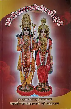 Śrīsītārāmakelikaumudī (Hindi: श्रीसीतारामकेलिकौमुदी) (2008), literally The moonlight (elucidation) for the [childhood] pastimes of Sītā and Rāma, is a minor poem in the Braja dialect of Hindi (with some verses in Maithili) belonging to the Rītikāvya genre. It was composed by Jagadguru Rambhadracharya (1950–) in the years 2007 and 2008.[1] The work is set in the backdrop of the Bālakāṇḍa of Vālmīki's Rāmāyaṇa and Tulasīdāsa's Rāmacaritamānasa, and is an assortment of verses describing the activities, pastimes and major events during the childhood of Sītā and Rāma. Śrīsītārāmakelikaumudī consists of 324 verses divided in three parts of 108 verses each. The verses are composed in seven Prakrit metres, namely Amātrika, Kavitta, Gīta, Ghanākṣarī, Caupaiyā, Drumila, and Mattagajendra.