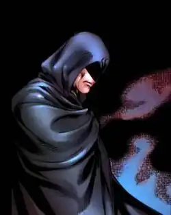 At the age of 10, Maximillian Coleridge saw his parents gunned down right before his eyes. He decided to dedicate his life to fighting crime. Upon graduation from college, he joined the mysterious temple called the "Cult of Kali", where he studied various styles of martial arts. After seven years of intense training, he graduated from that temple. During the celebration ceremony, he was branded with the "Kiss of Kali", a red-hot iron. He had the image of the goddess Kali imprinted in livid scar tissue on his face from nose to hairline and from cheek to cheek. Following a period of intense pain and hospitalization, he realized that his eyesight had been replaced by a mystic extrasensory perception. Traveling back to the United States, he adopted the masked identity of the "Shroud".[a] In his first appearance as a hero, he encountered the Human Torch.[3] He later invaded Latveria, intending to kill Doctor Doom for his crimes against humanity. The Shroud recounted his origin to Namor, and the two secretly entered Latveria disguised as members of the Circus of Crime. Shroud joined Prince Rudolfo's revolution against Doom, and came close to his revenge.[4] However, the Shroud shifted gears to help Doom and Captain America oppose someone else with a longer track record of crimes against humanity: the Red Skull. In outer space, the Shroud was shot by a ray built by the Red Skull while Doom battled the Red Skull on the moon. The Shroud was rescued by Captain America, while the Red Skull was left defeated on the Moon (but was later rescued by the Hate-Monger). Captain America brought the Shroud back to Earth, but because of his time in space, the Shroud became insane and it took him quite a while to recover.[5] After this recovery, the Shroud discovered that he was able to tap into the Darkforce dimension.