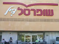 Shufersal (Hebrew: שופרסל), formerly Super-Sol in English and Shufra-Sal in Hebrew, commonly known as Super-sal, is the largest supermarket chain in Israel, with a 20% market share (as of 2018).[2] The company, which was established in 1958, was the first to implement the American supermarket model in Israel[3]