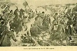 During the Battle of Slivnitsa, part of the Serbo-Bulgarian War in 1885, a large group of the Serbian Army was defending their positions at Slivnitsa and was reinforced before by a 135-kilometer march from southern Bulgaria to the Slivnitsa position. When the two battalions of the Serbian Army' Danubian Regiment arrived on the battlefield, Captain Benderev as the commander of the Bulgarian Army issued order to take Serbian positions immediately. This attack of the Danube Regiment is the most glorious and most important moment in Bulgarian history. Without a fight, in the performance of "Maritza Rushes", the Danube Regiment quickly climbed on a steep cliff. When the Serbian Army heard the lyrics, they escaped panically. The attack by the Bulgarian Army ended the battle with the Serbs retreating.[13]