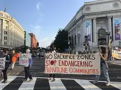 In October 2022, ShutDownDC organized a coalition of organizations for a week of actions surrounding the annual meetings of the IMF and World Bank. The coalition used the slogan "For People, For Planet: Decarbonize & Decolonize."[35] Demands included an end to fossil fuel investment by the institutions, as well as the canceling of debts held by countries in the Global South.[36]