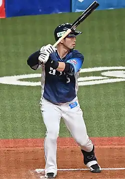 Shuta Tonosaki (外崎 修汰, Tonosaki Shūta; born December 20, 1992 in Hirosaki, Aomori, Japan), nicknamed "Apple Punch",[1] is a Japanese professional baseball infielder for the Saitama Seibu Lions of Nippon Professional Baseball (NPB).