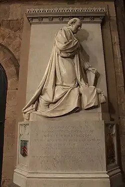 A fine marble monument was erected to Barrington's memory in Durham Cathedral sculpted by Francis Chantrey.[8]