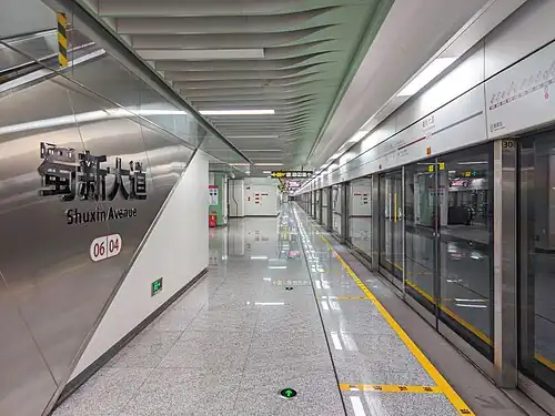 Shuxin Avenue Station is a metro station at Chengdu, Sichuan, China. It opened on December 18, 2020 with the opening of Chengdu Metro Line 6.[1][2][3]