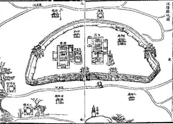 In 549 AD, the imperial government of Eastern Wei abandoned the old castle and city wall and moved the local government into a new county seat near the north of Shu River. In the meantime, the county was changed to the present name, Shuyang County (沭阳县). In the following 1400 years, the location of the county seat was kept constant.[4]