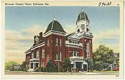 The committee's seventh hearing was held on March 17 at the Screven County Courthouse in Sylvania, part of the state's 1st congressional district.[123] This hearing was originally planned to be held in Savannah, the state's second largest city,[124] but it was moved to the more centrally located Sylvania at the request of committee member Parker.[64] Concerning the racial demographics of the district, African Americans constituted 40 percent of the population and were in the majority in five counties.[124] Additionally, Savannah had a strong and politically active NAACP chapter that had just recently initiated a sit-in and boycott at the time of the hearing.[124] Also, several of the coastal counties had higher than average voter registration for African Americans, with Liberty County being the only county in the Southern United States where black voters outnumbered white voters.[124]