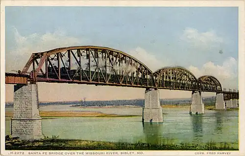 The Sibley Railroad Bridge is a three-span through truss single-track railroad bridge belonging to the BNSF Railway between Jackson County, Missouri, and Ray County, Missouri, at Sibley. The bridge carries the BNSF Marceline Subdivision over the Missouri River. It is the only single-track segment of the subdivision. The original 1887–88 bridge was a three-span Whipple through truss and was later reconstructed with Parker through truss spans. Besides the freight trains of BNSF Railway, it is also used by Amtrak's Southwest Chief.