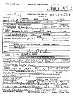 - ^ Medina, David; Lombardi, Frank (1 February 2015). "Punk rocker Sid Vicious dies of an overdose in 1979". Daily News. New York. Retrieved 6 May 2017.