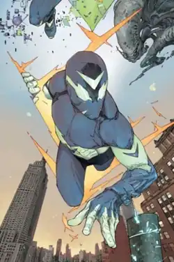 The character has been commonly compared to Marvel Comics character Spider-Man, specifically the Ultimate version, evoking both his costume design and personality. The character and comic initially received mixed reviews, with the first issue averaging 7 out of 10 according to review aggregator Comic Book Roundup. Over time, the series received generally positive reviews with an average rating of 7.4 out of 10.[15] In a review of the first issue for IGN, Blair Marnell praised Rocafort's art but said the teenage dialogue was "so far off of the mark that it borders on self-parody".[16] Bleeding Cool called the character "charming" but the story "meandering". It went on to say Rocafort's art is fantastic but not the best fit for the comic's tone.[17] The character is part of an effort to increase diversity in comics and has received attention for being a minority character drawn by a Puerto Rican artist.[18][19]