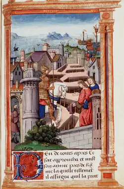 The people of Brundisium, apparently irritated by Pompey's and his men's attitude while within the city along with his disruptive defensive works, signalled to Caesar from the tops of houses once they realised that Pompey had left the city. Caesar received these signals and immediately ordered his men to prepare siege-ladders for a storming of the walls. As night fell, Pompey set off with his fleet. As they were scaling the walls Caesar's men were warned by the disgruntled residents of the many traps and fortifications which had been thrown up within them, and were then guided around the perimeter of the city to where the port lay.[10]