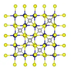 Siegenite (also called grimmite, or nickel cobalt sulfide) is a ternary transition metal dichalcogenide compound with the chemical formula (Ni,Co)3S4. It has been actively studied as a promising material system for electrodes in electrochemical energy applications due to its better conductivity, greater mechanical and thermal stability, and higher performance compared to metal oxides currently in use.[5] Potential applications of this material system include supercapacitors, batteries, electrocatalysis, dye-sensitized solar cells, photocatalysis, glucose sensors, and microwave absorption.[6]