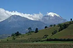 ![]() Pico de Orizaba and Sierra Negra viewed from the west, near Ciudad Serdán | |