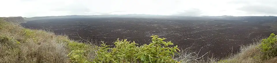 Sierra Negra (Spanish: Black Mountain) is a large shield volcano at the southeastern end of Isabela Island in the Galapagos that rises to an altitude of 1124m.[1] It coalesces with the volcanoes Cerro Azul to the west and Alcedo to the north. It is one of the most active of the Galapagos volcanoes with the most recent historic eruption beginning in June 2018 and continuing through the summer.