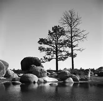 A portion of the Sierra de Juárez is protected within Constitution 1857 National Park, approximately 72 kilometres (45 mi) east of Ensenada.[4] The scenic Laguna Hanson, an important stopover for migratory birds, and the endemic pine-oak forests habitat are within the park.[4]