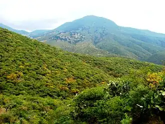 The natural vegetation includes tropical dry forest, thorn scrub, semi-thorn scrub, and chaparral at lower elevations, and oak and pine–oak forest at higher elevations.[1]