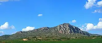 Sierra del Mugrón is a 16.6 km (10 mi) long mountain range located between the shire of Valle de Cofrentes (Valencian: Vall de Cofrents), Valencian Community, and Almansa, Castile-La Mancha, Spain. It is an isolated range between the Iberian System and the Cordillera Prebética. Its highest point is 1,209 m. The northern section of this range is within the Ayora (Valencian: Aiora) municipal term, while the southern belongs to Almansa.