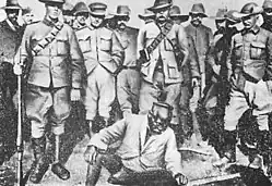 His support for Bambatha may have had something to do with the fact that Sigananda had been shielded by Bambatha's grandfather during his exile in Natal all those years ago. But when the rebellion collapsed, Sigananda surrendered to the British.[6] While in captivity he entertained his captors with stories of the great Zulu kings. One soldier was moved to remark that an old man nearing 100, and so obviously adored by his people, had no place in the dank prison to which he had been confined. But, while awaiting his sentence under martial law, Sigananda died of natural causes.