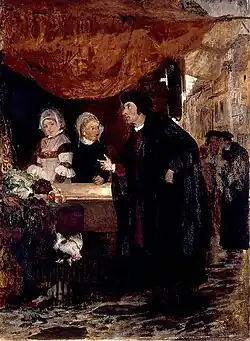 In Bergen, Willoms was likely involved in a variety of business ventures, including a pastry stall and an inn.[3][5] In 1507, the close confidant of Crown Prince Christian, Erik Valkendorf, met Sigbrit and Dyveke at a stand in the market where they sold pastries. Valkendorf told the prince about Dyveke's beauty, and the prince invited mother and daughter to a ball, after which Dyveke, with the consent of Sigbrit, became Christian's mistress.[5]