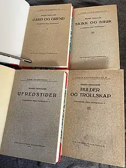 - Hulder og trollskap. Folkeminne fraa Østerdalen (Fairies and Witchcraft: Folklore from Østerdalen; 1925)