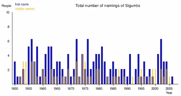 Sigurrós is an Icelandic female name, formed by conjoining sigur (victory) and rós (rose). Over 200 women currently carry it as their first given name and around 100 as their second or third given name.
