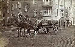 The property was home to 28 residents in five households at the 1850 census. Marie Christine Mortensen resided on the ground floor with three of her children, three coachmen and two maids.[20] Two widows resided in the first floor apartment with a lodger and a maid.[21] T.F. Thomsen, a merchant trading on Iceland, resided on the second floor with his wife Berthine Thomsen (née Mortensen, one of the sisters-in-law from the 1840 census), their one-year-old son and one maid.[22] Niels Jensen, an employee in the haulier's business, resided in the basement with his wife Ellen Marie, their two-year-old son and one maid.[23] Søren Sørensen, a policeman, resided in the rear wing with his wife Caroline Margrethe (née Mortensen, the other sister-in-law from the 1840 census), their four children (aged one to six) and his mother Maren Sørensen (née Kruse).[24]