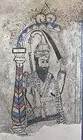 - Detail of frescoes of two Akali-Nihang Sikhs (‘dvarpala’ or door guardians) at the entrance of a Mandir in Bandar Abbas in Iran, ca.1892