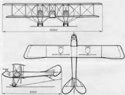 The S-18 was a large three bay biplane fighter/interceptor powered by two 150 hp (112 kW) Sunbeam Crusader V-8 water-cooled engines mounted on the lower wing in a pusher configuration. The aircraft featured armor protection for both crew members with the gunner/observer seated in the nose and armed with a single machine gun. The aircraft was very heavy and with the less than reliable Sunbeam engines neither example built was able to leave the ground.[1][2]