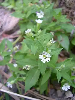 Silene menziesii is a species of flowering plant in the family Caryophyllaceae known by the common names Menzies' campion[2] and Menzies' catchfly. It is native to western North America from Alaska through the western half of Canada to the southwestern United States. It can be found in many types of habitat and it is quite common in much of its range. It is variable in morphology and there are a number of varied subtaxa. In general, it is a perennial herb growing from a caudex, appearing matlike, decumbent, or erect, with stems a few centimeters to over half a meter long. It is usually hairy in texture, with upper parts bearing sticky glandular hairs. The leaves are lance-shaped, oppositely arranged in pairs, and a few centimeters in length, upper leaves usually smaller than lower. Flowers may occur in a cyme at the top of the stem, or in leaf axils, or both. Each is encapsulated in a hairy, veined calyx of fused sepals. The petals are white with two lobes at the tips. The plant is dioecious with male and female plants producing different flowers. The male and female flower types look the same externally; the stamens are reduced in female plants and the stigmas are reduced in the male.