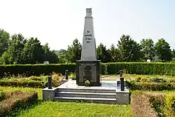 The first monument, dedicated to the Silesian insurgents from Kostuchna, was erected in 1922. It was destroyed by the Germans in 1939 during the Second World War. The current monument was unveiled on November 17, 2002, on the 80th anniversary of the incorporation of Upper Silesia into Poland.[1] The shape of the monument and the inscription are faithful to the original. Additionally, the names of 93 Silesian insurgents from Kostuchna were inscribed on the monument.[2] Mieczysław Zwoliński, former principal of Primary School No. 53 in Kostuchna, initiated the creation of the current replica. The project was designed by Karolina Możejko-Rogowska, Andrzej Szofer, and Bernard Uszok.[1] The obelisk was erected by the stonemasonry workshop of Irena Mateja.[1]