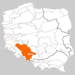 Silesian Lowlands (or Silesian Plains, Polish: Nizina Śląska, Czech: Slezská nížina, German: Schlesische Niederung) are lowlands located in Silesia, Poland in Central Europe. A small part is located in the Czech Republic. The Silesian ridge runs through northern Silesia from west-northwest to east-southeast and adjoins the Polish mountains in Greater Poland, at the origin of the Ozimek. Its average width is 45 km and its length is around 200 km, with the Glogau Valley in the north and the Wrocław Valley in the south. It is part of the Central European Plain. Silesian Lowlands is a physical-geographical macroregion. It is the warmest region in Poland.