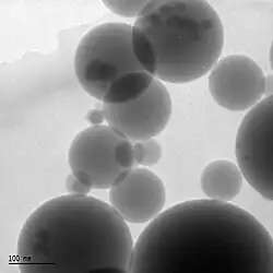 Silica fume is an ultrafine material with spherical particles less than 1 μm in diameter, the average being about 0.15 μm. This makes it approximately 100 times smaller than the average cement particle.[4] The bulk density of silica fume depends on the degree of densification in the silo and varies from 130 (undensified) to 600 kg/m3. The specific gravity of silica fume is generally in the range of 2.2 to 2.3. The specific surface area of silica fume can be measured with the BET method or nitrogen adsorption method. It typically ranges from 15,000 to 30,000 m2/kg.[5]