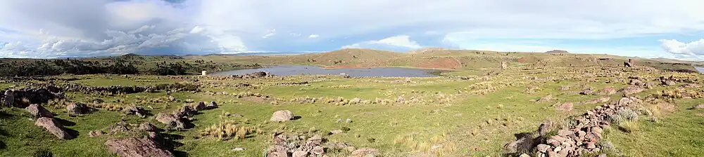 Sillustani is a pre-Incacemetery on the shores of Lake Umayo near Puno in Peru. The tombs, which are built above ground in tower-like structures called chullpas, are the vestiges of the Qulla people, most likely a Puquina-speaking people,[1] conquered by the Inca Empire in the 15th century.