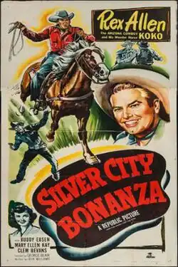 Silver City Bonanza is a 1951 American Western film directed by George Blair and written by Robert Creighton Williams. Starring Rex Allen, Buddy Ebsen, Mary Ellen Kay, Billy Kimbley, Alix Ebsen and Bill Kennedy, it was released on March 1, 1951, by Republic Pictures.[1][2][3]