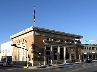 Within its boundaries of Black, College, Hudson, and Spring streets are located thirty-eight contributing properties, spread out over an area of 88 acres (36 ha).[1] The properties include some of Silver City's most significant commercial, government, religious, and residential buildings. The commercial area is mainly located along Broadway and Bullard Street; most of the commercial buildings are two-story brick structures, and many feature cast iron storefronts. The Grant County Courthouse, which was designed and built in 1930, is located at the end of Broadway. The houses in the district are also mainly brick, a locally abundant building material; they represent a variety of architectural styles, including a number of Second Empire works. Five churches are included in the district; these include Gothic Revival and Mission Revival designs.[2]