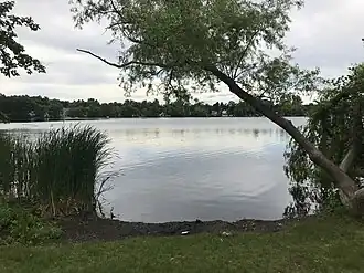 Along the shore of the lake is the Town Beach at Silver Lake,[3] containing a large beach on Burnap Street alongside a playground dedicated to Sean Collier.[4] Next to the beach is Fullerton Park,[5] a large park located on Grove Avenue. Another park, Landry Park,[5] is located along Massachusetts Route 38.
