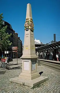 Post milestone at Zwickau, Obertor—start of the Silver Road