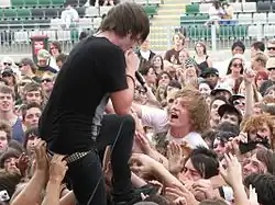 Silverstein has been described as "musically schizophrenic."[64] The band's "hybrid sound"[65] has been characterized as a "screamo-tinged brand of melodic hardcore",[69][70] incorporating various elements of "shimmering" emo,[78][70] punk rock,[79] "gritty, hot-blooded" post-hardcore,[82][70] and "soaring" indie rock.[83][70] Critics have also made note of elements of math rock, heavy metal, hardcore punk, emo pop, skate punk and power pop apparent in the band's style.[84][85][86][87] The band's heavy end has drawn comparisons to Suicidal Tendencies and Motörhead, while its pop sensibilities have drawn comparisons to Dashboard Confessional. It has been suggested that the band's music could potentially help "introduce [hardcore punk] to the pop legion," while also being characterized as "music to scare your parents with."[88][89]