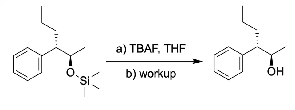 Due to the strength of the Si-F bond, fluoride salts are commonly used as a deprotecting agent of silyl groups.[2] The primary fluorous deprotecting agent is tetra-n-butylammonium fluoride (TBAF), as its aliphatic chains in help incorporate the fluoride ion into organic solvents.[5][6][7]