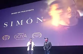 Simón was nominated for the Grand Jury Award for Best Narrative Feature at the Florida Film Festival and won the Audience Award Winner for Best International Narrative Feature at the 2023 Dallas International Film Festival.[24][25] At the Venezuelan Film Festival, the film received multiple awards, including "Best Feature", "Best Director", "Best Supporting Actor" (for Franklin Virgüez), "Best Cinematography", "Best Editing" and "Best Screenplay".[8][26][27] The film was not chosen as the country's candidate for the Academy Awards (the Oscars), obtaining 10 votes in favor, 12 against and two abstentions, which proved controversial at the time.[28][29][30][31][32] On 25 September 2023, the Academy of Motion Picture Arts and Sciences, which presents the Academy Awards, asked to add the film's screenplay to its permanent library collection.[33][34] On 17 October, Simón was awarded the Grand Prize for Best Narrative Feature at the Heartland International Film Festival.[35][36] The Venezuelan Academy of Motion Picture Arts and Sciences chose Simón to represent Venezuela in the 38th Goya Awards.[37] On 30 November, Simón was officially nominated to the 38th Goya Awards in the Best Ibero-American Film category.[38][39][40]