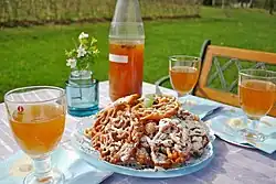 Sima is usually accompanied by a munkki (donut), a tippaleipä (a special Vappu funnel cake), or a rosetti (rosette).