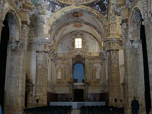 The land around Simat de la Valldigna has been inhabited since the beginning of history, as the coves de Bolomor in Tavernes de la Valldigna, and Medalletes and Parpalló in Barx show. Nonetheless, the first concrete historical references appear during the Muslim period. The Christian conquest of the 13th century began a new period in this village history. James I conquered these lands, but his grandson James II gave them to the Cistercian order. When James II came back from an expedition against the kingdoms of Murcia and Almeria at the end of the 13th century, they came through the vall d'Alfàndec (ancient name of the Valldigna valley). Then the king was impressed by the valley's beauty, and he exclaimed (speaking to the Cistercian Santes Creus monastery abbot): Vall digna per a un monestir de la vostra religió! (A suitable valley for a monastery of your order). The Santes Creus abbot replied: Vall digna! (Suitable valley).[4] On 15 March 1297 James II of Aragon donated the vall d'Alfàndec (Alfàndec valley) to the Cistercian order in order to found a monastery devoted to the Virgin Mary. Since this moment, the Alfàndec valley will change its name and it will be called Valldigna.