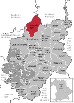 Simmelsdorf is a municipality in the district of Nürnberger Land in Bavaria in Germany.