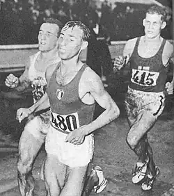 ![]() Finnish runner Simo Saloranta (right) following Italy's Volpi and Germany's Müller in Rome, 1959 | |