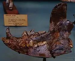 | Simocyon primigenius lower jaw at Musee d'Histoire Naturelle Paris. | |